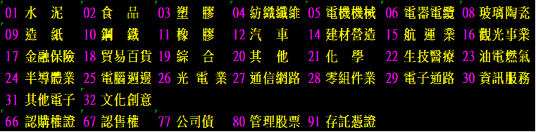 黃色:上市    綠色:上櫃   紅色:處置交易5分鐘    紫色:處置交易10分鐘